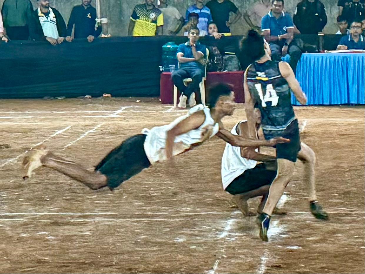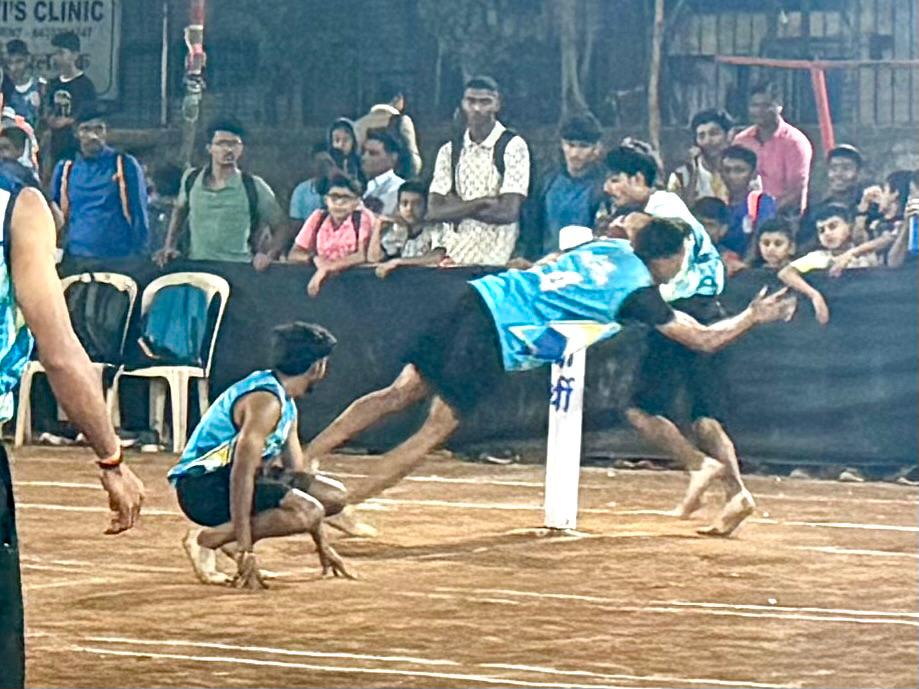In the 4 feet 11 inches category, the host Student Sports Center won a resounding 13-1 victory over the Sri Samarth Vyayam Mandir team by a margin of 12 points and one innings. For the winning team, Kartik Chandorkar (7 minutes defense and 2 points), Vignesh Jadhav (not out 5:50 minutes defense and 1 point), Sairaj Jadhav (1:10 minutes defense and 2 points), Shaurya Jadhav (4 points) played a fantastic game. For the losing team, Krishal and Anuj fought hard.